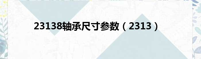 大家好,今天小六子来为大家解答以下的问题,关于23138轴承尺寸参数,2313这个很多人还不知道,现在让我们一起来看看吧!