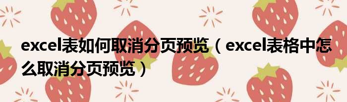 excel表如何取消分页预览(excel表格中怎么取消分页预览)