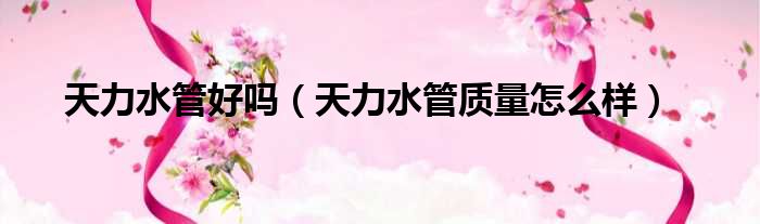 导读 大家好,今天小六子来为大家解答以下的问题,关于天力水管好吗,天力水管质量怎么样这个很多人还不知道,现在让我们一起来看看吧!1、不外乎
