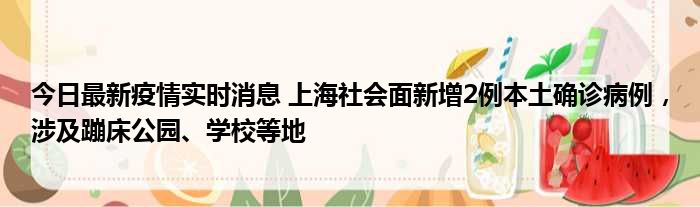 您的位置:首页 >房产频道 > 综合精选 > 今日最新疫情实时消息 上海社会面新增2例本土确诊病例,涉及蹦床公园、学校等地 2022-10-10 09:50:05 • 来源: 导读 免责声明:本文由用户上传,如有侵权请联系删除! 上一篇:手机设置置顶聊天是什么意思(手机里面置顶聊天是什么意思) 下一篇:遗落的旧时光(遗落)