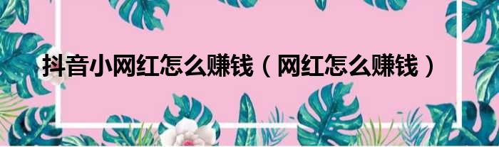 抖音小网红怎么赚钱(网红怎么赚钱)