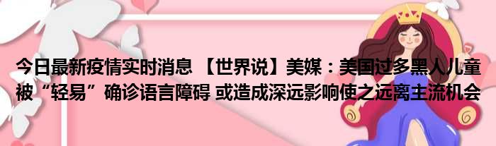 您的位置:首页 >房产频道 > 综合精选 > 今日最新疫情实时消息 【世界说】美媒:美国过多黑人儿童被“轻易”确诊语言障碍 或造成深远影响使之远离主流机会 2022-10-10 10:56:06 • 来源: 导读 免责声明:本文由用户上传,如有侵权请联系删除! 上一篇:非正整数包括什么数(非正整数) 下一篇:丙二醇是什么
