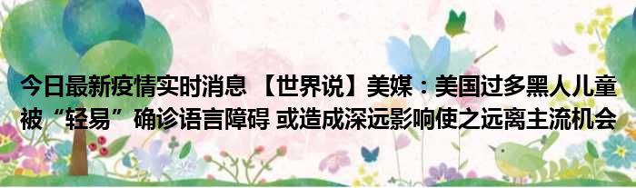 您的位置:首页 >房产频道 > 综合精选 > 今日最新疫情实时消息 【世界说】美媒:美国过多黑人儿童被“轻易”确诊语言障碍 或造成深远影响使之远离主流机会 2022-10-10 11:06:06 • 来源: 导读 免责声明:本文由用户上传,如有侵权请联系删除! 上一篇:业务员招聘怎么写吸引(业务员招聘信息怎么写) 下一篇:最火的男单肩包品牌(男士单肩包品牌排行)