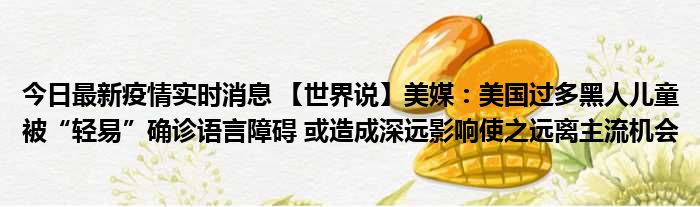 您的位置:首页 >房产频道 > 综合精选 > 今日最新疫情实时消息 【世界说】美媒:美国过多黑人儿童被“轻易”确诊语言障碍 或造成深远影响使之远离主流机会 2022-10-10 11:16:05 • 来源: 导读 免责声明:本文由用户上传,如有侵权请联系删除! 上一篇:好玩的单机手游推荐2022(好玩的单机手游推荐) 下一篇:扣扣头像图片2022最新款女(扣扣头像)