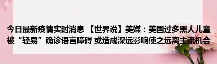 您的位置:首页 >房产频道 > 综合精选 > 今日最新疫情实时消息 【世界说】美媒:美国过多黑人儿童被“轻易”确诊语言障碍 或造成深远影响使之远离主流机会 2022-10-10 12:04:06 • 来源: 导读 免责声明:本文由用户上传,如有侵权请联系删除! 上一篇:英雄联盟烬的大招怎么放(烬的大招怎么放) 下一篇:优秀员工推荐理由怎么写好(优秀员工推荐理由怎么写)