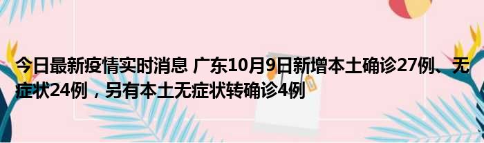 今日最新疫情实时消息 广东10月9日新增本土确诊27例、无症状24例,另有本土无症状转确诊4例