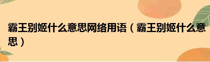 霸王别姬什么意思网络用语(霸王别姬什么意思)