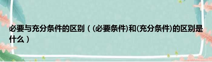 必要与充分条件的区别((必要条件)和(充分条件)的区别是什么)