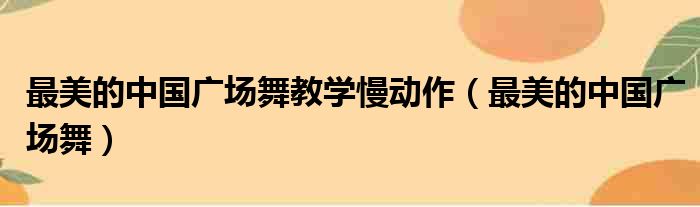 最美的中国广场舞教学慢动作(最美的中国广场舞)