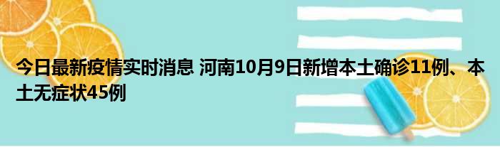 您的位置:首页 >房产频道 > 综合精选 > 今日最新疫情实时消息 河南10月9日新增本土确诊11例、本土无症状45例 2022-10-10 15:00:07 • 来源: 导读 免责声明:本文由用户上传,如有侵权请联系删除! 上一篇:时间财富网兼职(时间财富网怎么赚钱) 下一篇:日记70字大全60篇(日记70)