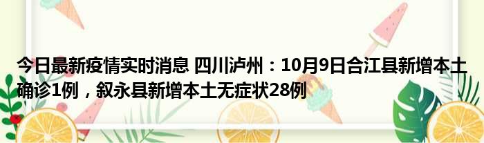 今日最新疫情实时消息 四川泸州:10月9日合江县新增本土确诊1例,叙永县新增本土无症状28例