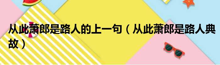 导读 大家好,今天小六子来为大家解答以下的问题,关于从此萧郎是路人的上一句,从此萧郎是路人典故这个很多人还不知道,现在让我们一起来看看吧