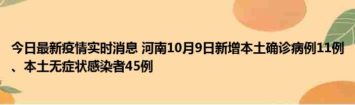 今日最新疫情实时消息 河南10月9日新增本土确诊病例11例、本土无症状感染者45例