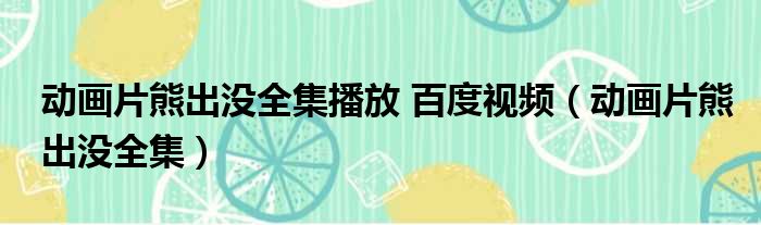 动画片熊出没全集播放 百度视频(动画片熊出没全集)