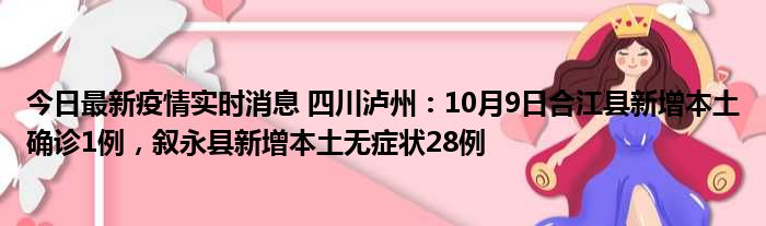 今日最新疫情实时消息 四川泸州:10月9日合江县新增本土确诊1例,叙永县新增本土无症状28例