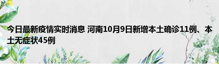您的位置:首页 >房产频道 > 综合精选 > 今日最新疫情实时消息 河南10月9日新增本土确诊11例、本土无症状45例 2022-10-10 17:30:07 • 来源: 导读 免责声明:本文由用户上传,如有侵权请联系删除! 上一篇:新款长安cs15为什么销量不高(长安cs15质量问题爆发) 下一篇:头孢呋辛酯片和头孢克肟胶囊的区别(头孢呋辛酯片和头孢克肟的区别)