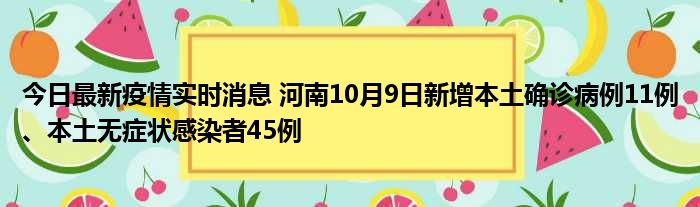 今日最新疫情实时消息 河南10月9日新增本土确诊病例11例、本土无症状感染者45例