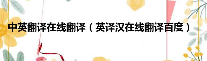 导读 大家好,今天小六子来为大家解答以下的问题,关于中英翻译在线翻译,英译汉在线翻译百度这个很多人还不知道,现在让我们一起来看看吧!1、在