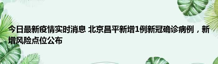 今日最新疫情实时消息 北京昌平新增1例新冠确诊病例,新增风险点位公布