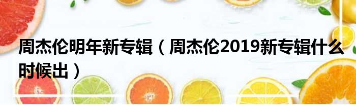 导读 大家好,今天小六子来为大家解答以下的问题,关于周杰伦明年新专辑,周杰伦2019新专辑什么时候出这个很多人还不知道,现在让我们一起来看看