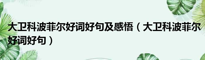 大卫科波菲尔好词好句及感悟(大卫科波菲尔好词好句)
