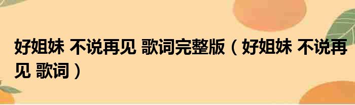 好姐妹 不说再见 歌词完整版(好姐妹 不说再见 歌词)