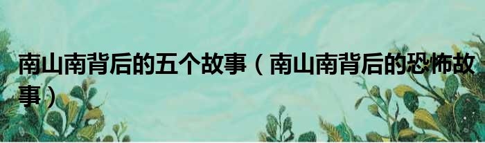 南山南背后的五个故事(南山南背后的恐怖故事)