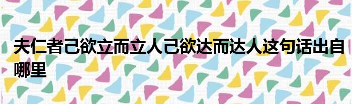 导读 大家好,今天小六子来为大家解答以下的问题,关于夫仁者己欲立而立人己欲达而达人这句话出自哪里这个很多人还不知道,现在让我们一起来看看