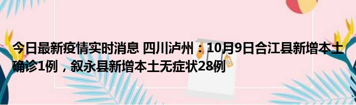 今日最新疫情实时消息 四川泸州:10月9日合江县新增本土确诊1例,叙永县新增本土无症状28例