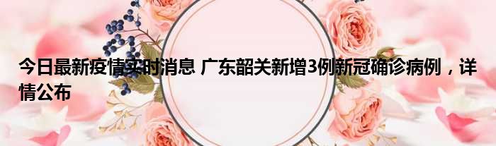 今日最新疫情实时消息 广东韶关新增3例新冠确诊病例,详情公布