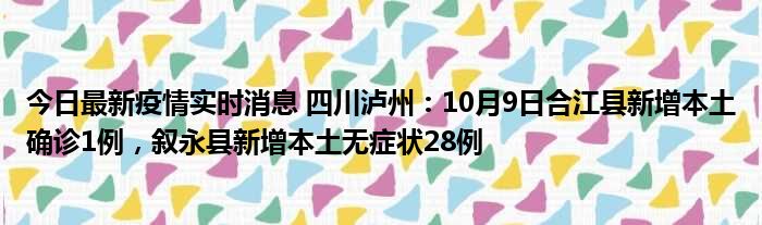 今日最新疫情实时消息 四川泸州:10月9日合江县新增本土确诊1例,叙永县新增本土无症状28例