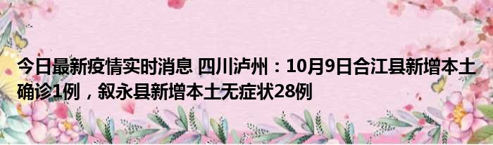 今日最新疫情实时消息 四川泸州:10月9日合江县新增本土确诊1例,叙永县新增本土无症状28例