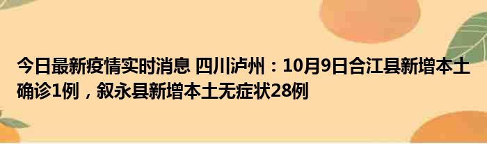 今日最新疫情实时消息 四川泸州:10月9日合江县新增本土确诊1例,叙永县新增本土无症状28例