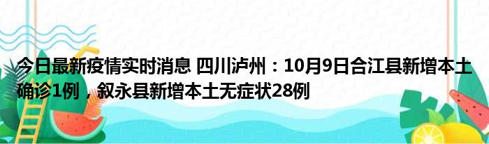 今日最新疫情实时消息 四川泸州:10月9日合江县新增本土确诊1例,叙永县新增本土无症状28例