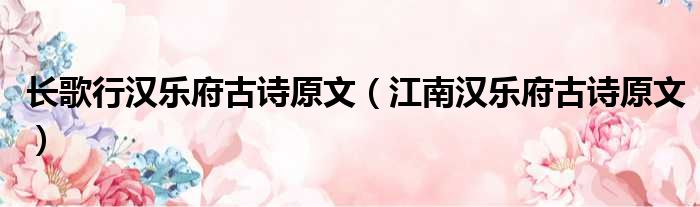 长歌行汉乐府古诗原文(江南汉乐府古诗原文)
