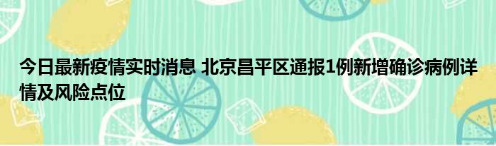 今日最新疫情实时消息 北京昌平区通报1例新增确诊病例详情及风险点位