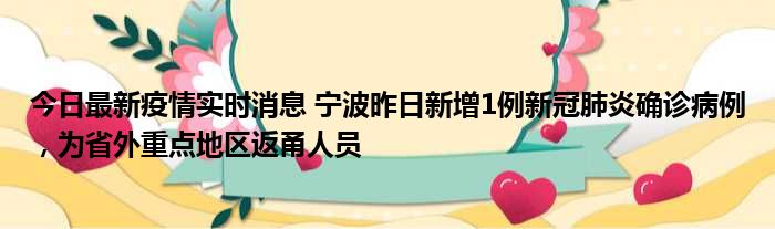 您的位置:首页 >房产频道 > 综合精选 > 今日最新疫情实时消息 宁波昨日新增1例新冠肺炎确诊病例,为省外重点地区返甬人员 2022-10-10 23:46:07 • 来源: 导读 免责声明:本文由用户上传,如有侵权请联系删除! 上一篇:歌词后面的cover什么意思(歌曲后面(cover)是什么意思) 下一篇:天竺寺八月十五日夜桂子 意思(天竺寺八月十五日夜桂子这首诗的意思)