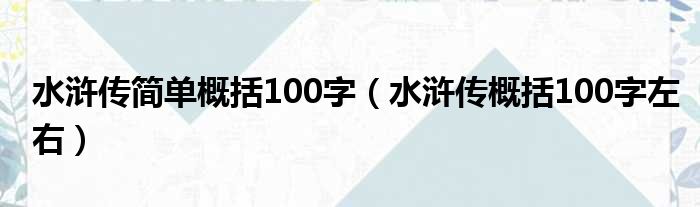 水浒传简单概括100字(水浒传概括100字左右)