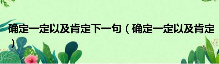 导读 大家好,今天小六子来为大家解答以下的问题,关于确定一定以及肯定下一句,确定一定以及肯定这个很多人还不知道,现在让我们一起来看看吧!1