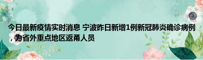 您的位置:首页 >房产频道 > 综合精选 > 今日最新疫情实时消息 宁波昨日新增1例新冠肺炎确诊病例,为省外重点地区返甬人员 2022-10-11 00:26:05 • 来源: 导读 免责声明:本文由用户上传,如有侵权请联系删除! 上一篇:Outlook初始密码(outlook2007密钥) 下一篇:墙体彩绘机生意好不好(墙体彩绘机的缺点 实用吗)