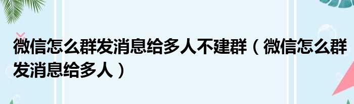 微信怎么群发消息给多人不建群(微信怎么群发消息给多人)