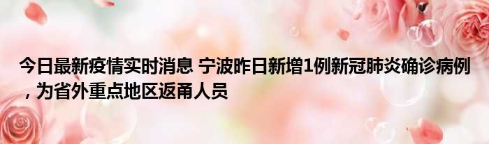 您的位置:首页 >房产频道 > 综合精选 > 今日最新疫情实时消息 宁波昨日新增1例新冠肺炎确诊病例,为省外重点地区返甬人员 2022-10-11 02:06:06 • 来源: 导读 免责声明:本文由用户上传,如有侵权请联系删除! 上一篇:热敷贴发热原理视频(热敷贴发热原理) 下一篇:中国人民银行结构化面试题目及答案(2016年中国人民银行面试题目有哪些 面)