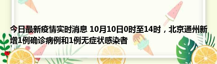 今日最新疫情实时消息 10月10日0时至14时,北京通州新增1例确诊病例和1例无症状感染者