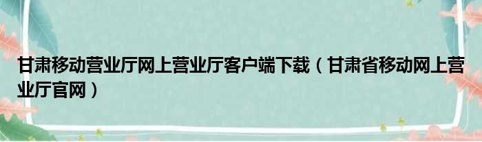 甘肃移动营业厅网上营业厅客户端下载(甘肃省移动网上营业厅官网)