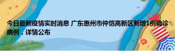 今日最新疫情实时消息 广东惠州市仲恺高新区新增1例确诊病例,详情公布