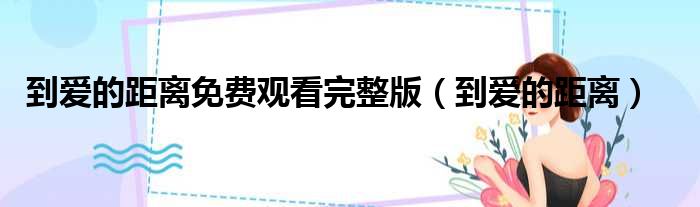 大家好,今天小六子来为大家解答以下的问题,关于到爱的距离免费观看完整版,到爱的距离这个很多人还不知道,现在让我们一起来看看吧!