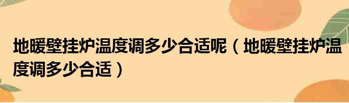 地暖壁挂炉温度调多少合适呢(地暖壁挂炉温度调多少合适)