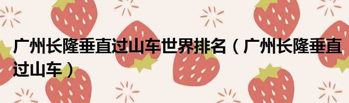 导读 大家好,今天小六子来为大家解答以下的问题,关于广州长隆垂直过山车世界排名,广州长隆垂直过山车这个很多人还不知道,现在让我们一起来看