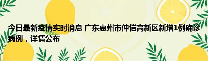 今日最新疫情实时消息 广东惠州市仲恺高新区新增1例确诊病例,详情公布
