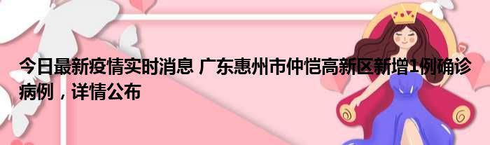 今日最新疫情实时消息 广东惠州市仲恺高新区新增1例确诊病例,详情公布